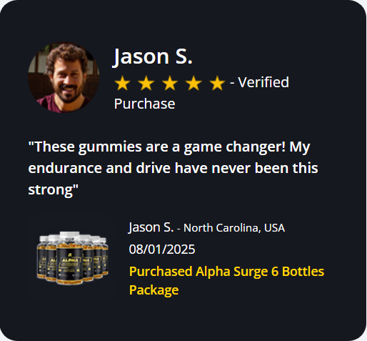 • 💬 Online user reviews consistently praise Alpha Surge for “surprisingly fast results,” “feeling like myself again,” and “renewed energy both at the gym and in the bedroom.”